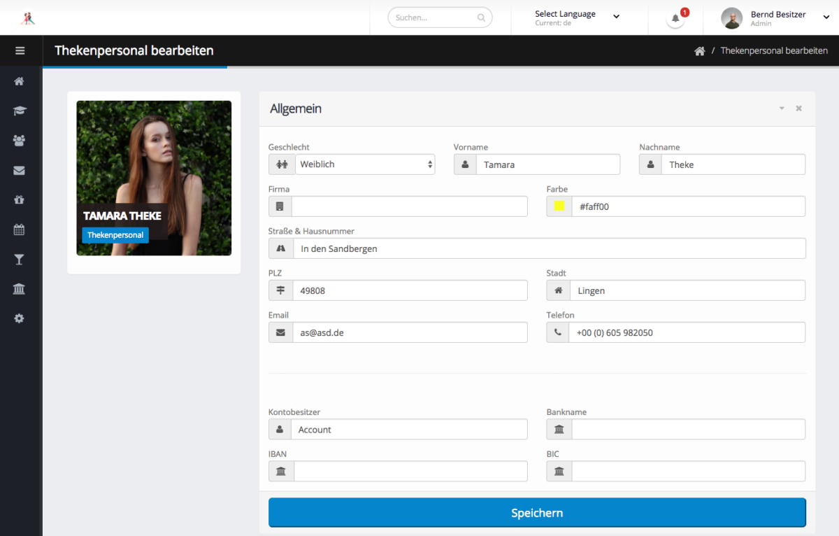Damit einem Arbeitstag auch Thekenpersonal zugewiesen werden kann, müssen diese vorerst angelegt werden. In der Übersicht dazu finden Sie das bisher von Ihnen erstellten Personal plus Kontaktdaten.